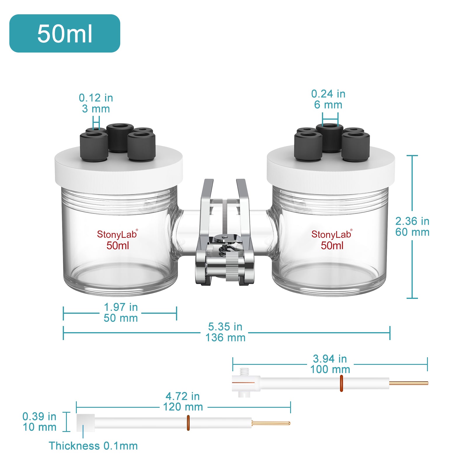 - Replaceable Ion Membrane Design: The ion exchange membrane (NOT included) between the two chambers can be easily replaced. Supports a three-electrode system for improved control and more accurate measurements