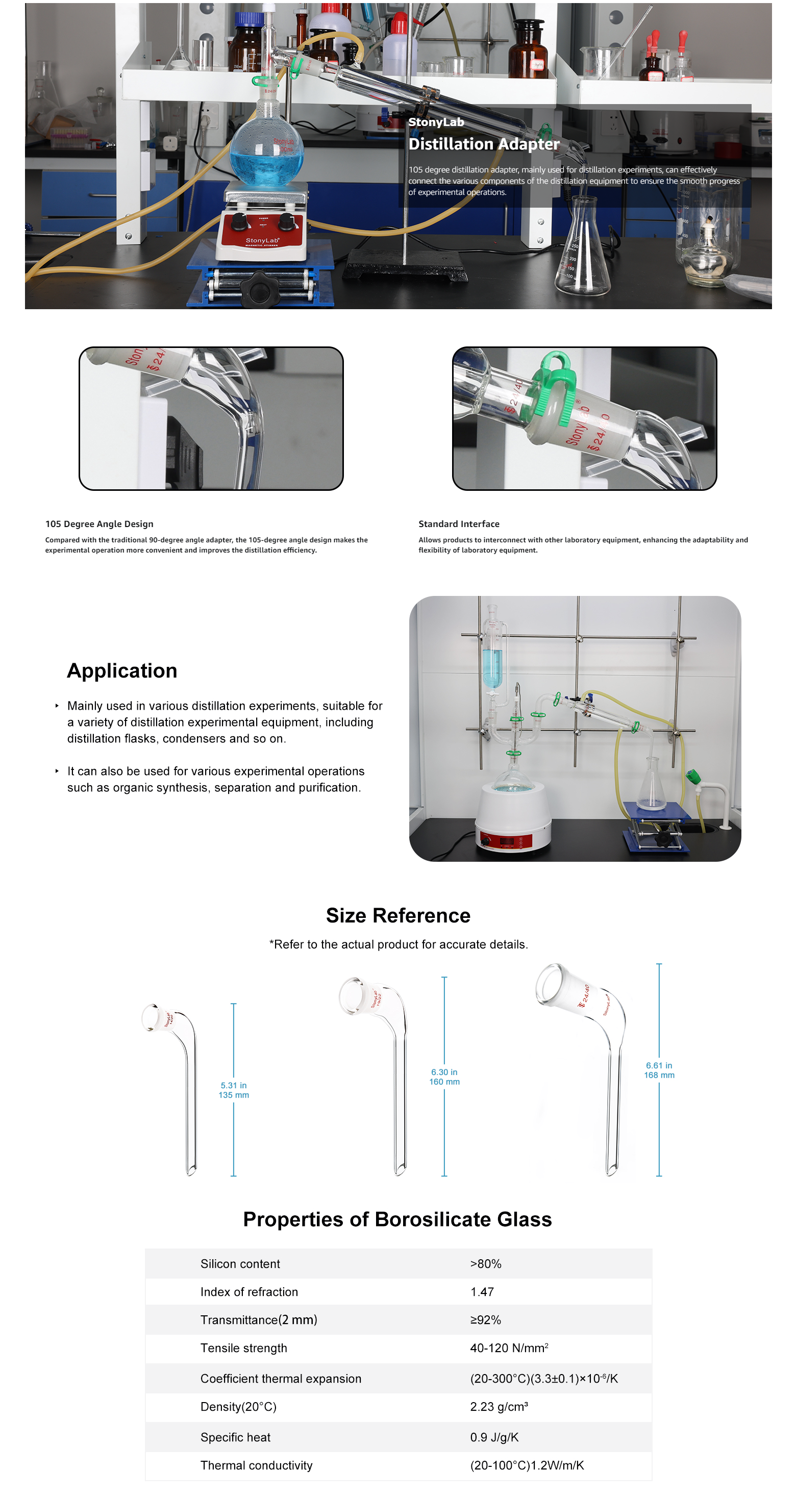 Bent Distillation Adapter with 100 mm Tapered Drip Tube, 105 Degree