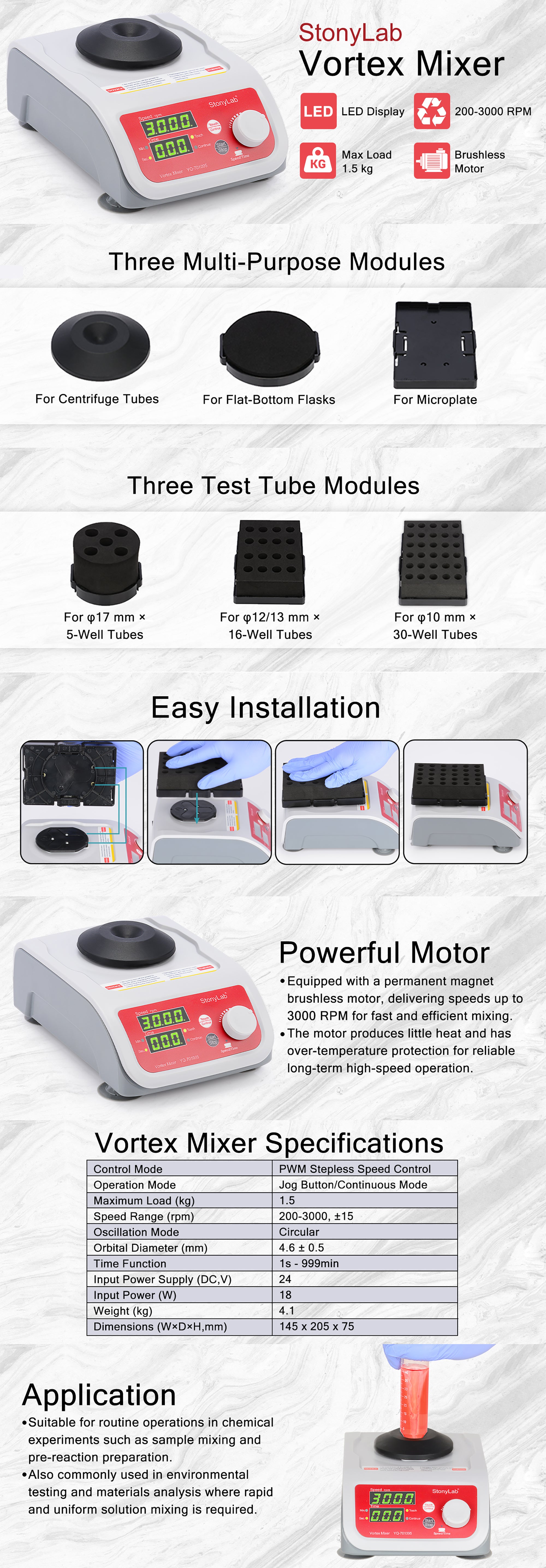- Compact and stable, StonyLab Advanced Digital Vortex Mixer is ideal to mix accurate and efficient sample(s) with precise speed and time control; widely used in lab research and experiments like general test tube mixing, biochemical assays, precipitated assays, and more
