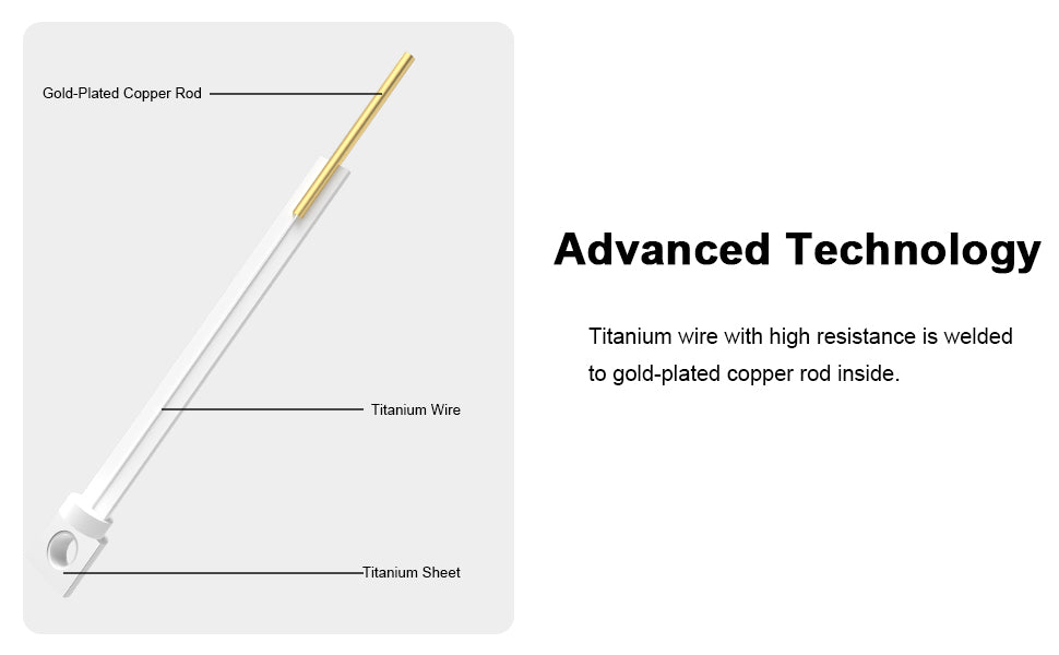 - Made of metal sheet conductive substrate (Cu purity >99.98%), PTFE coating outside, copper rod inside, and sealing rubber ring