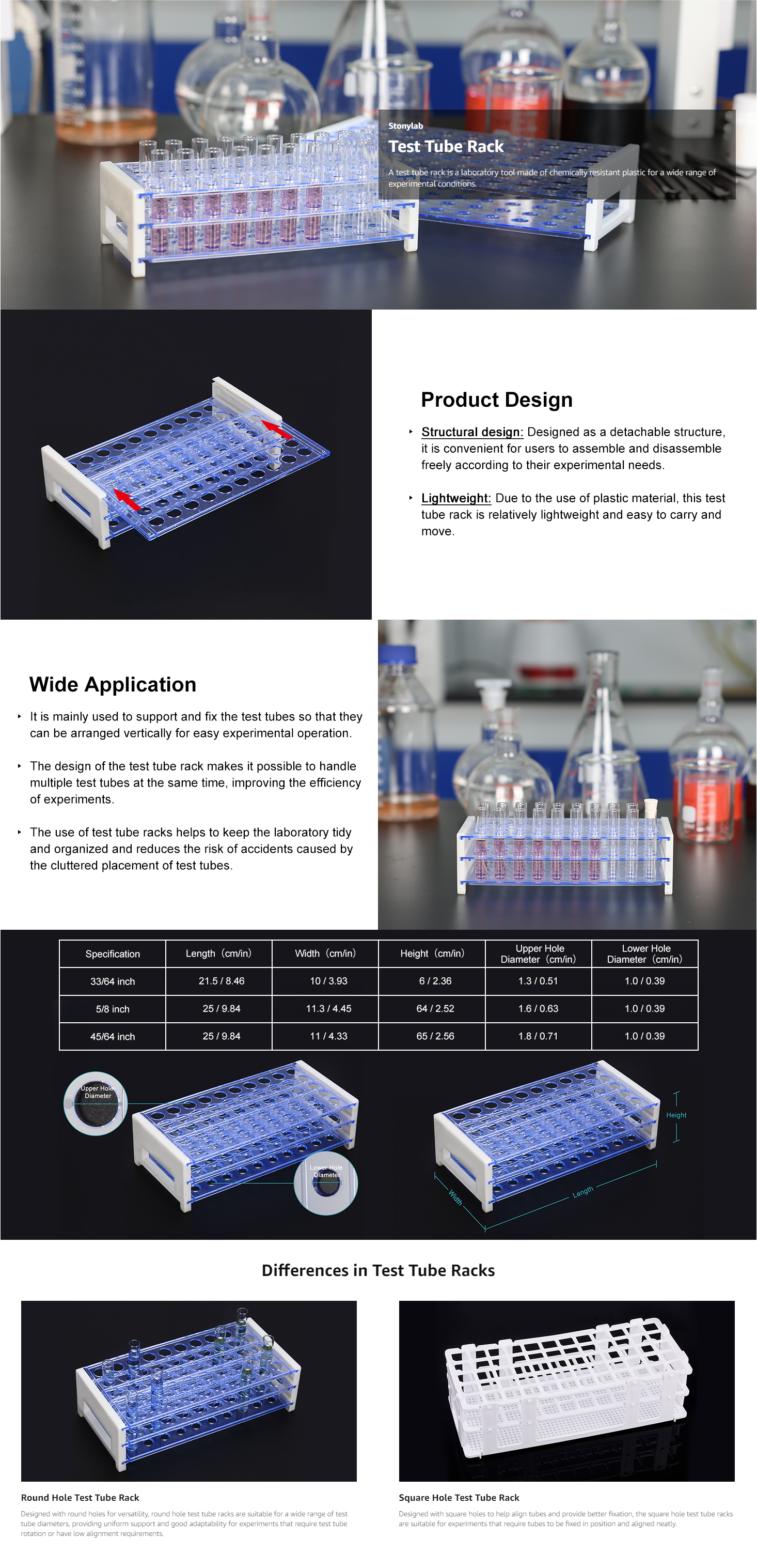- StonyLab 3-tier plastic test tube rack; lab equipment used to hold upright multiple test tubes at the same time; get an easy access to tubes with organized storage and protection
