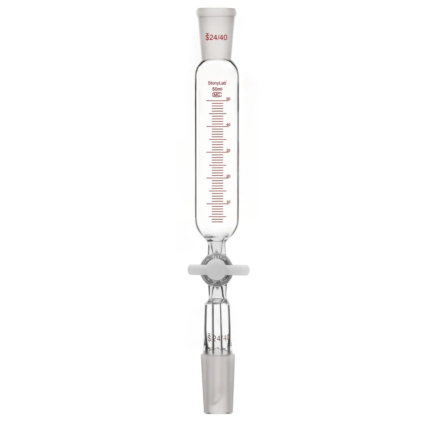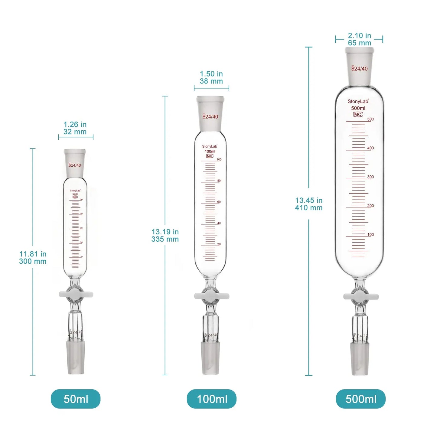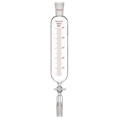 - Cylindrical style with PTFE stopcock allows transfer to be controlled; useful for adding reagents slowly