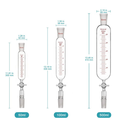 Addition Funnel, 24/40 Joint, PTFE Stopcock, 50-500 ml