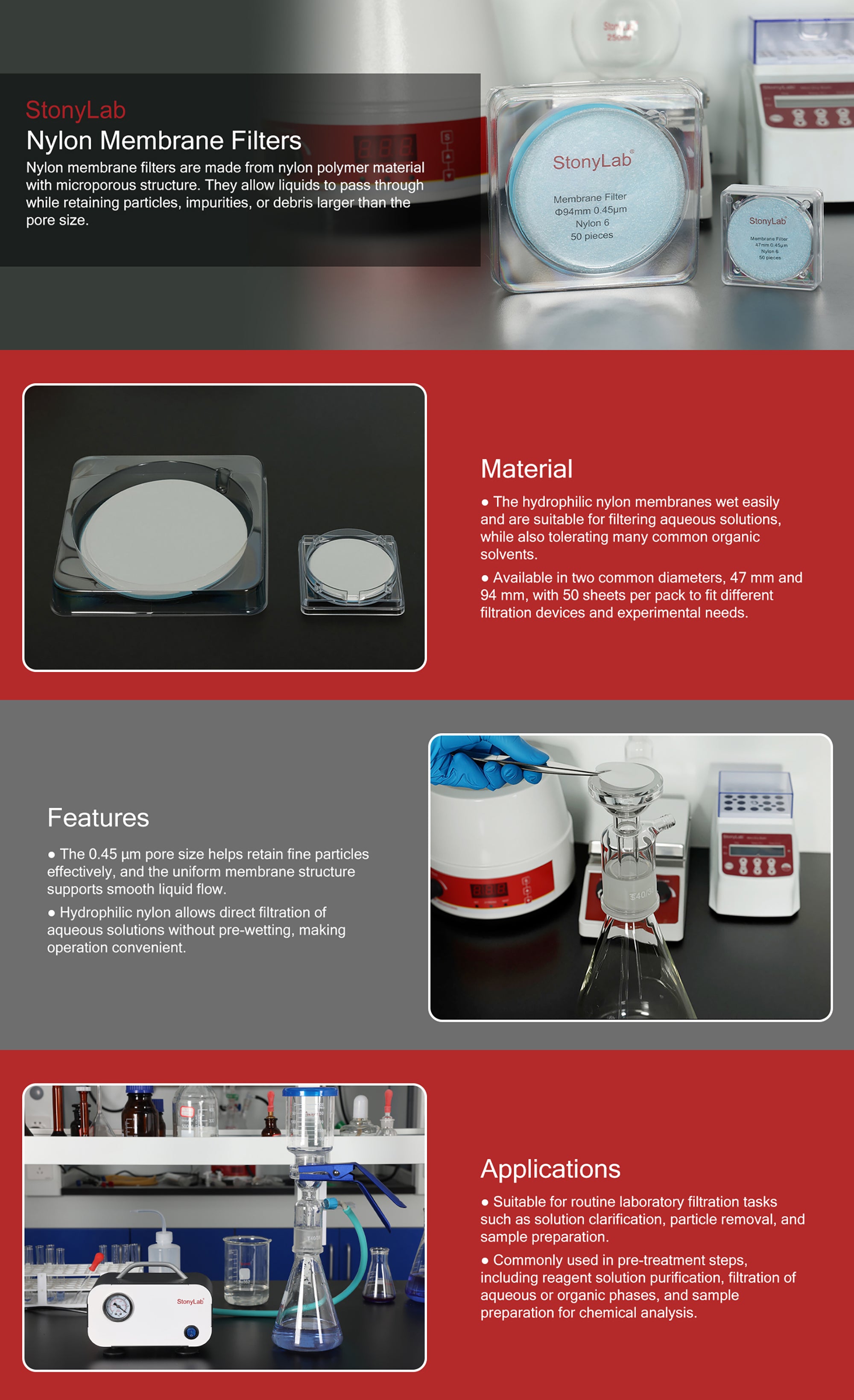 Nylon Membrane Filters, 0.45-micrometer Pore Size, 47-94 mm Diameter, Pack of 50 Sheets