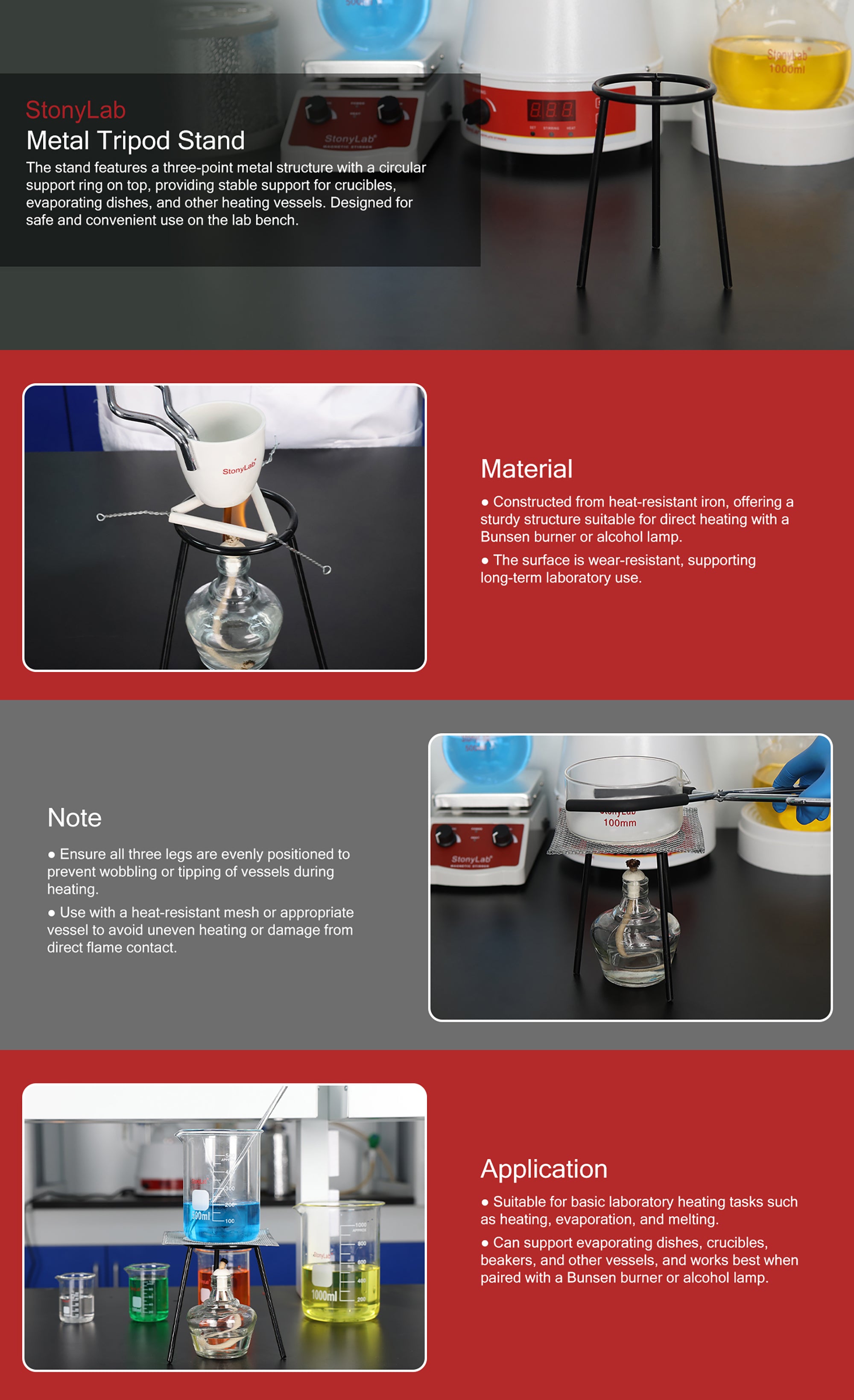 - StonyLab Metal Tripod Stand for use with lamps or Bunsen burners, ideal for laboratory applications