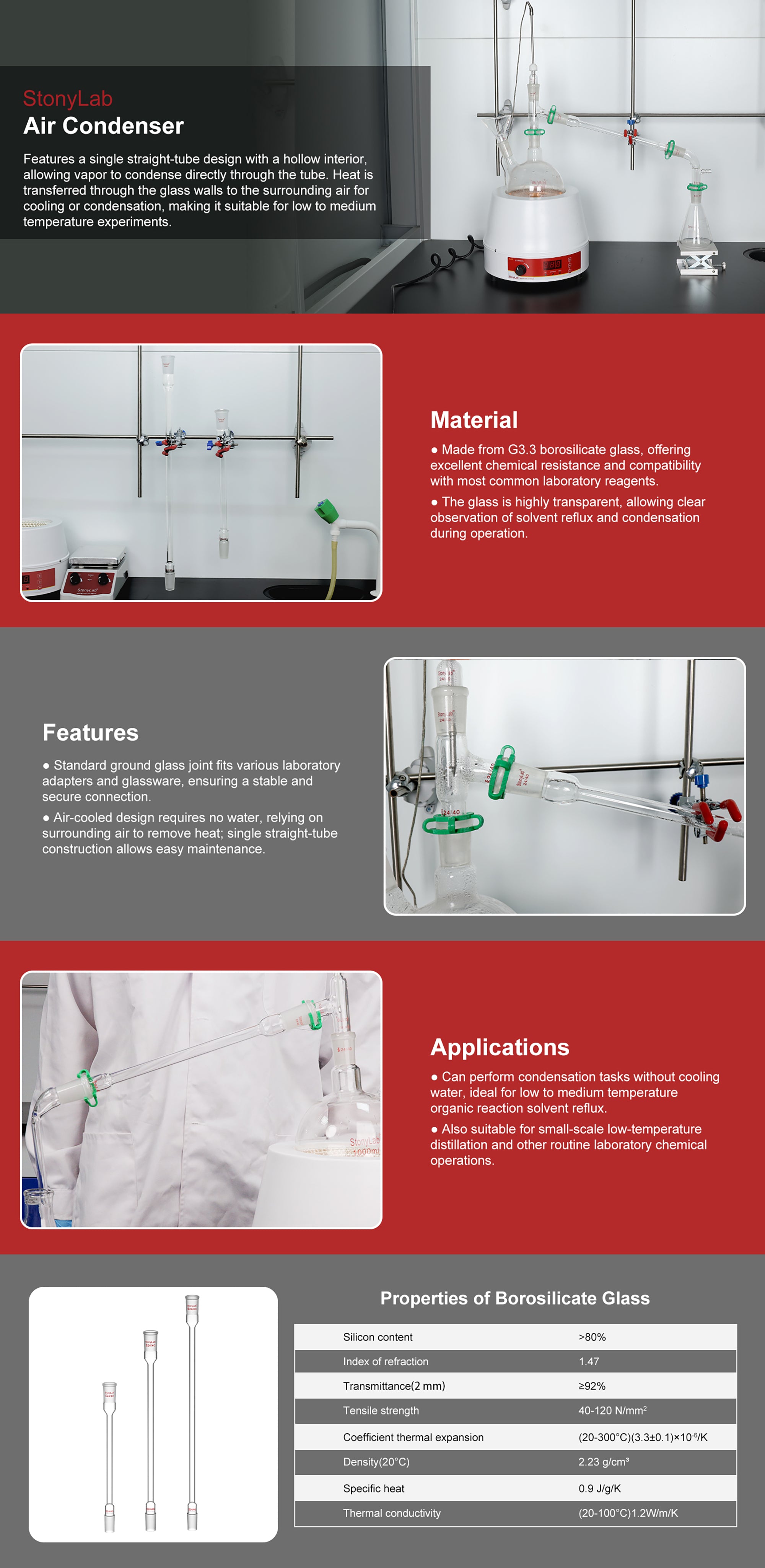 - stonylab Air Condensation Tube is ideal for condensing distillation products, especially when dealing with higher boiling points of distillates