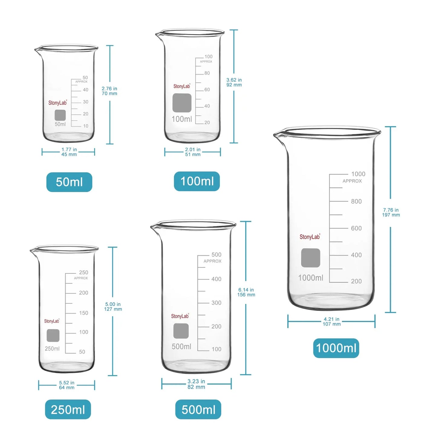 - One pack tall beaker made of high borosilicate glass, commonly used for transferring and pouring liquids in laboratory settings; also ideal for daily use