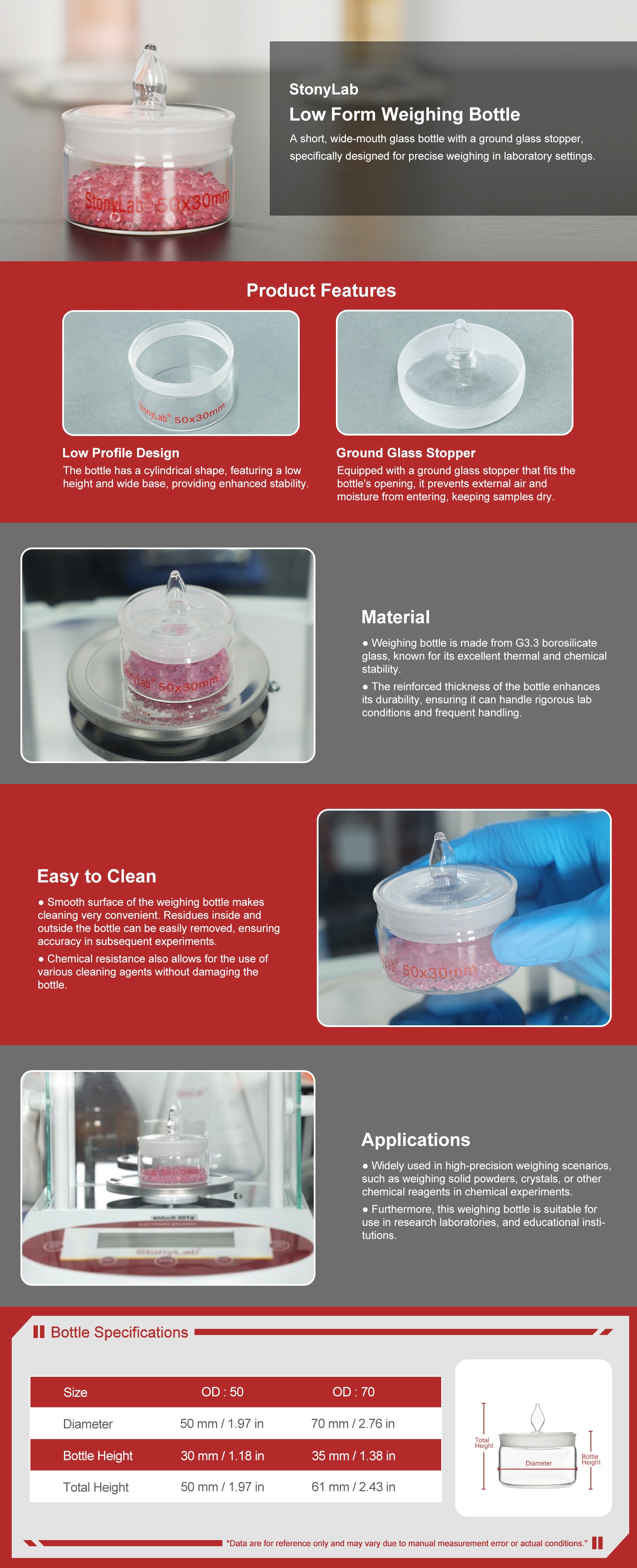 - Moisture Protection: features a ground glass stopper to safeguard samples from moisture absorption and humidity