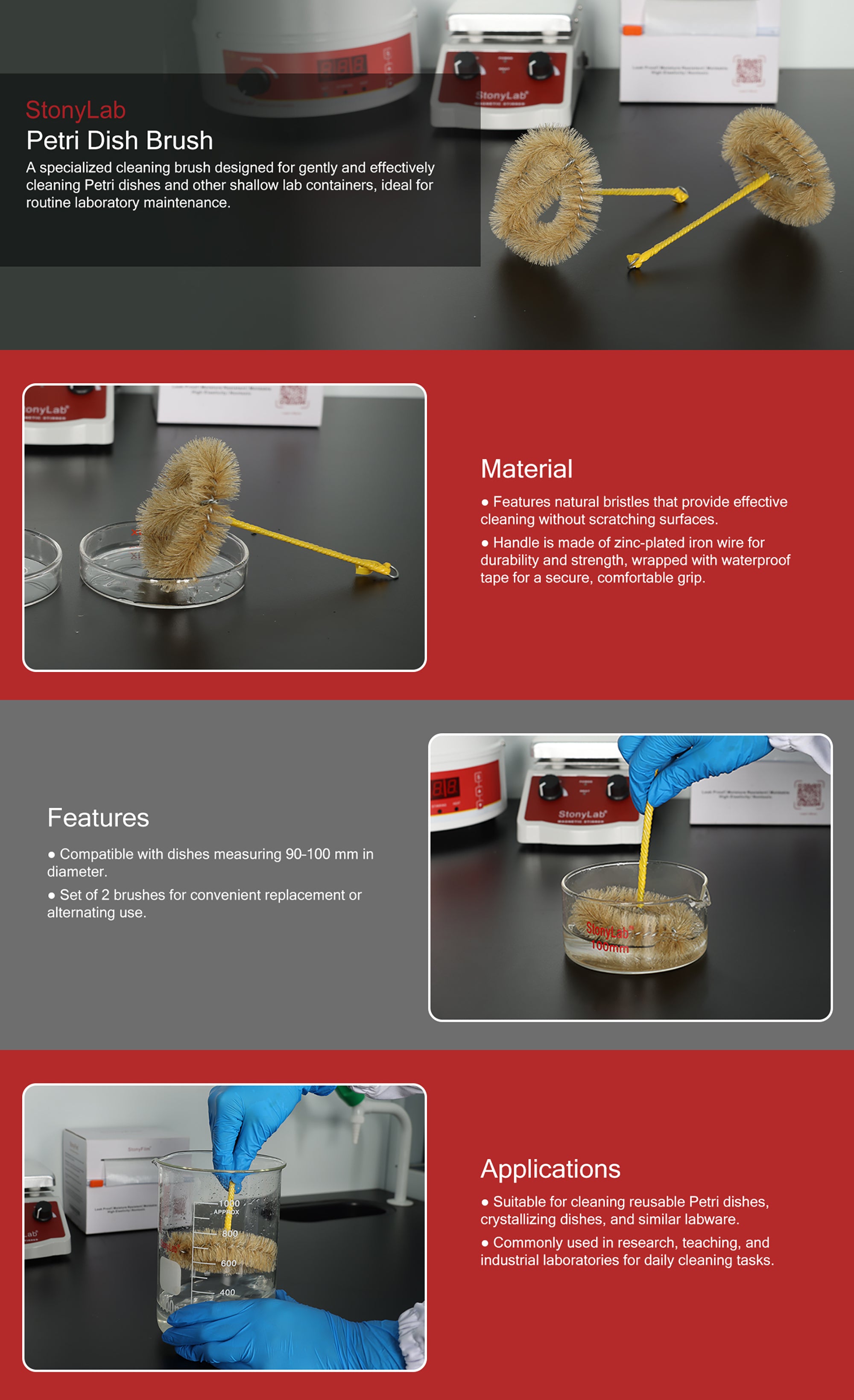 Dish Brushes, 2 Pack for 100 mm OD Petri Dish