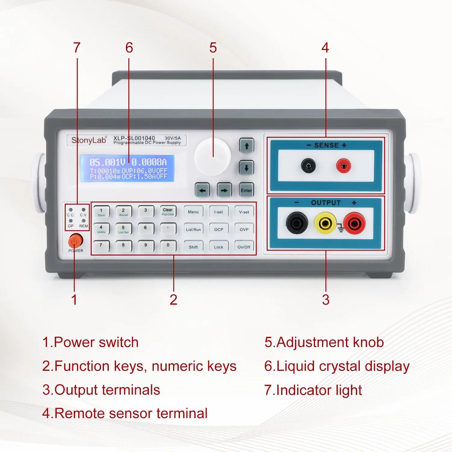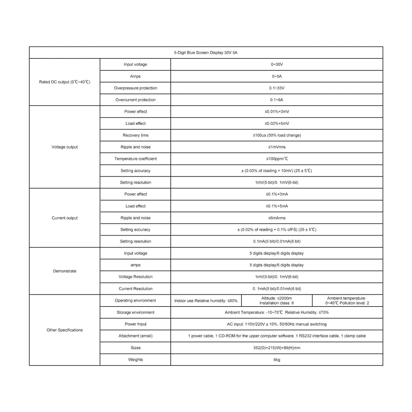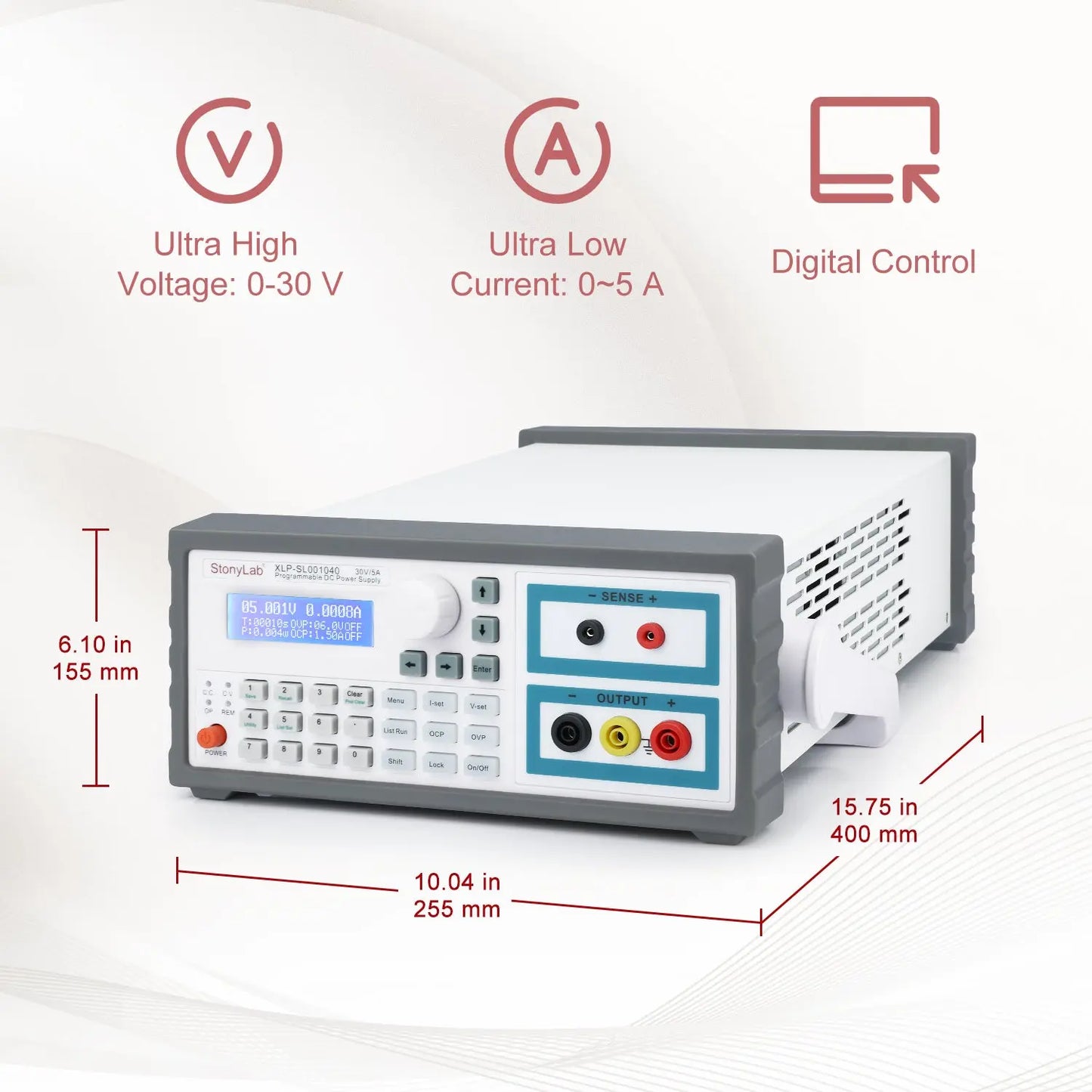 - Constant Voltage/Constant Current Switching: features automatic switching between constant voltage and constant current modes, with up to 30V/5A output capability and five-digit numerical display for accurate readings