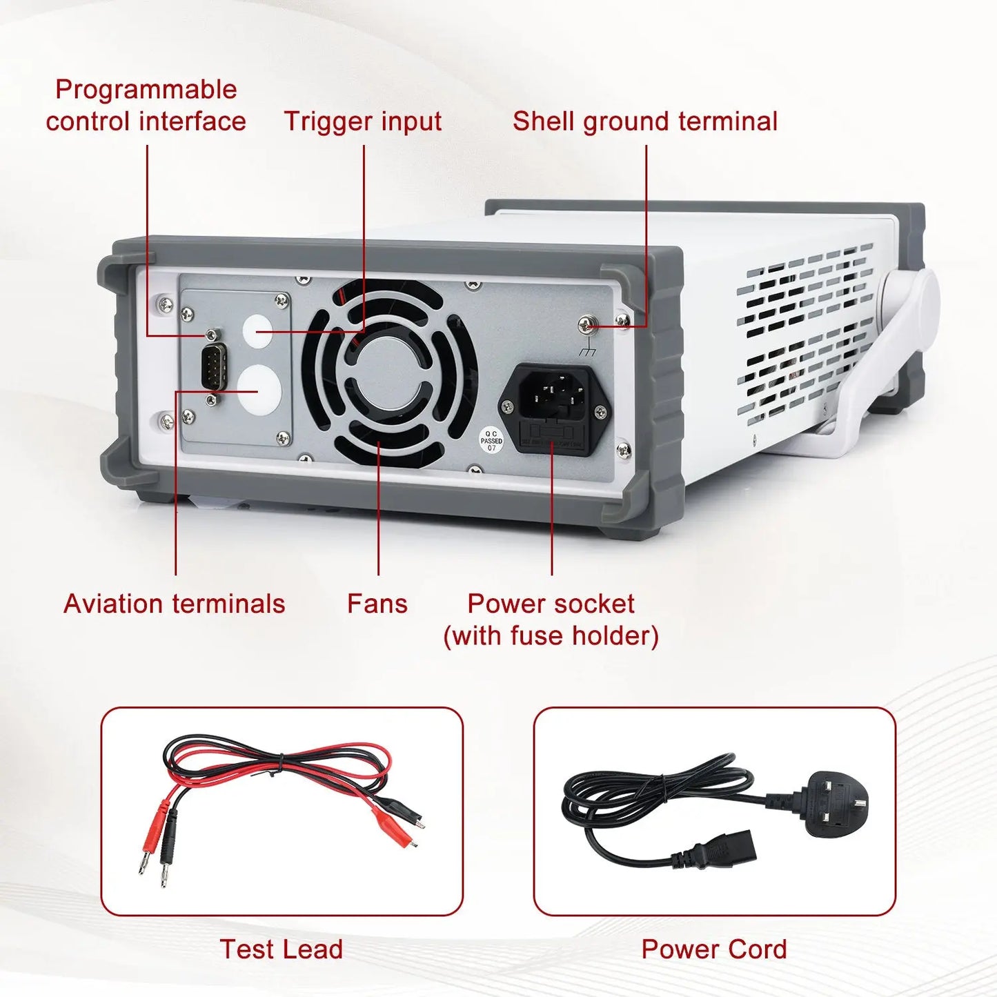 - Fully Digitalized Control System: input data effortlessly using the keyboard and knobs, ensuring quick, precise, and convenient operation; widely utilized in electronic product development, device testing, telecommunications, laboratories, and research institutions