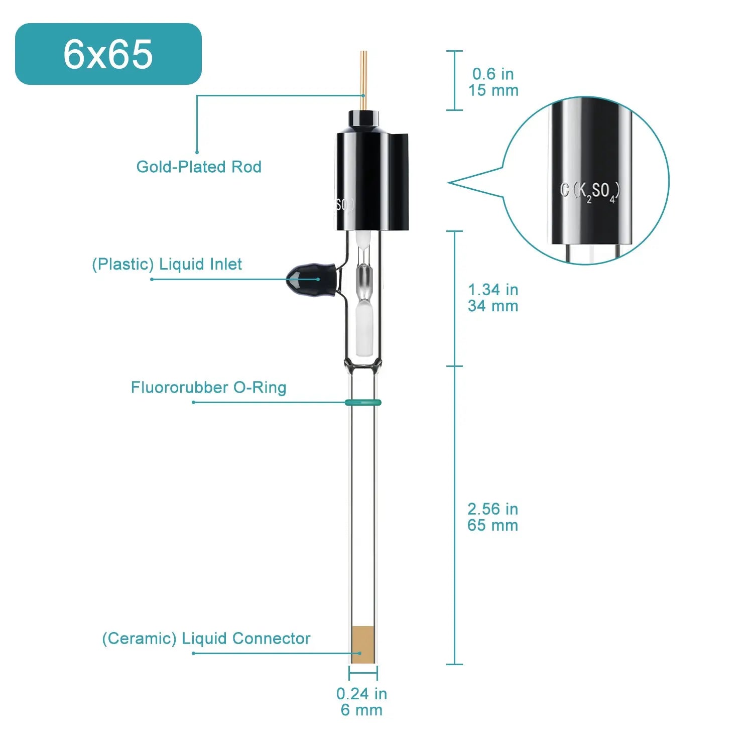 • Precise Dimensions for Efficiency: with a 6 mm diameter and 65 mm length at the lower end, this electrode offers precise dimensions, facilitating efficient utilization in experiments