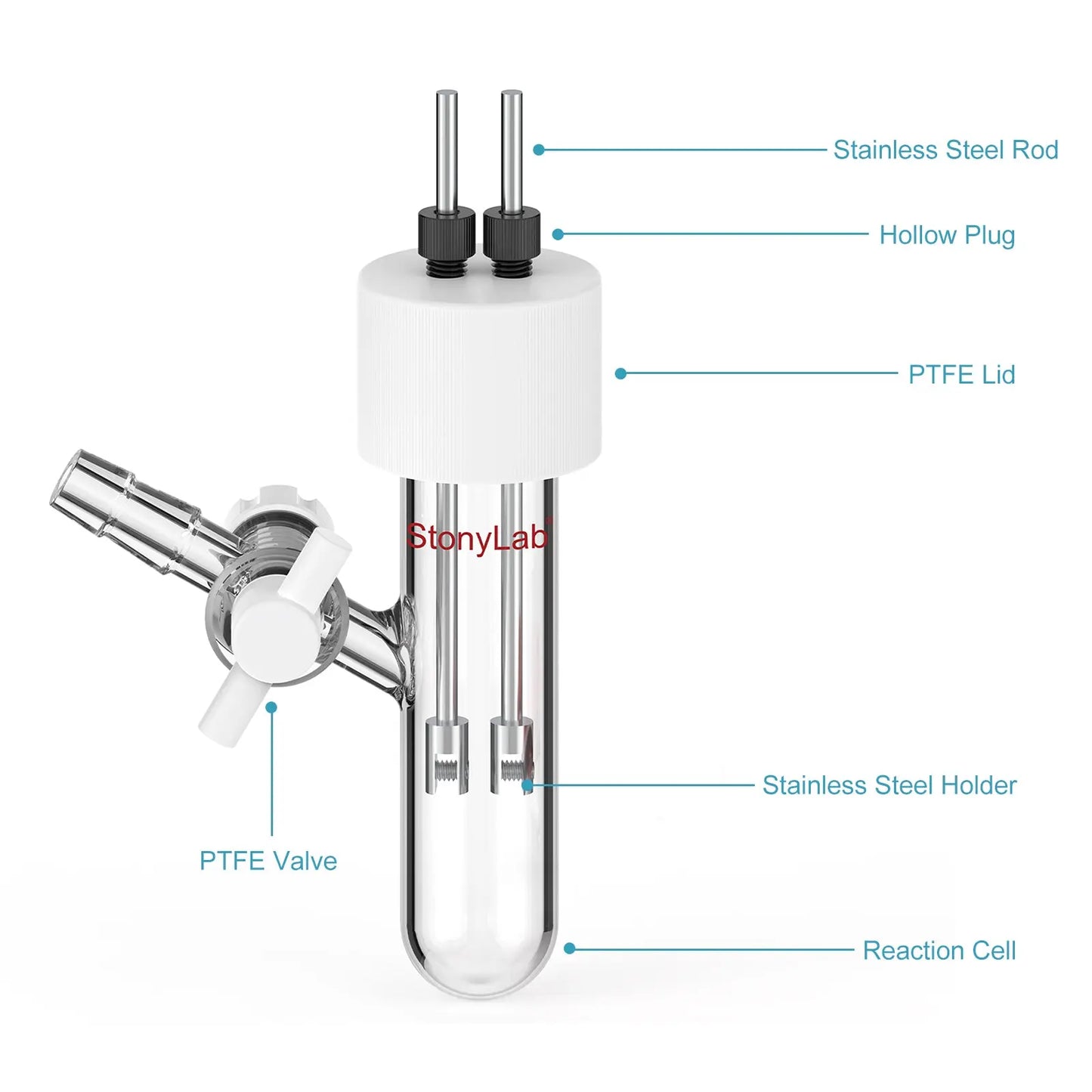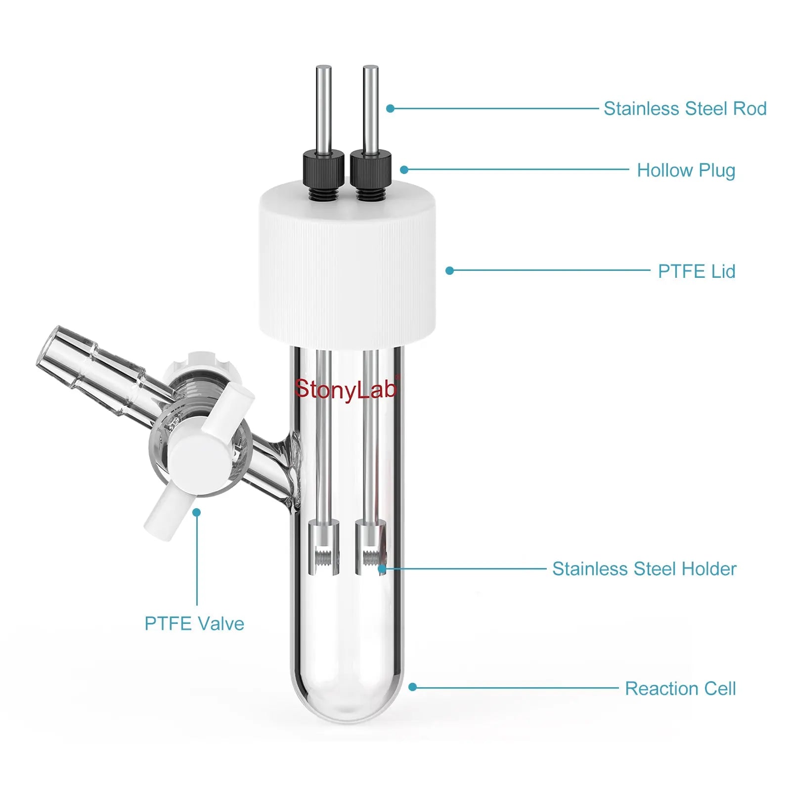 - Complete Electrolytic Cell Kit: includes one electrolytic cell main body and two stainless steel T-bar electrode holders, compatible with electrode samples ranging from 0.004-0.12 inch thick, 0.04-0.4 inch wide, and 0.4-0.98 inch long