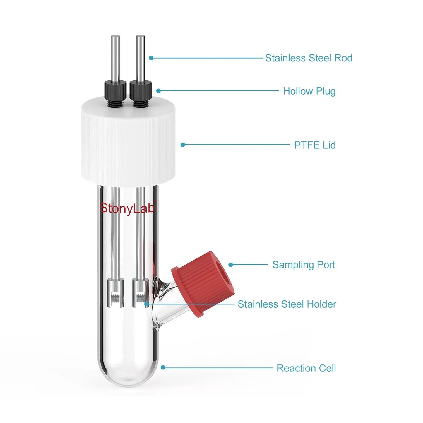 - Comprehensive Kit: includes one electrolytic cell main body and two stainless steel T-bar electrode holders, compatible with electrode samples ranging from 0.004-0.12 inch thick, 0.04-0.4 inch wide, and 0.4-0.98 inch long