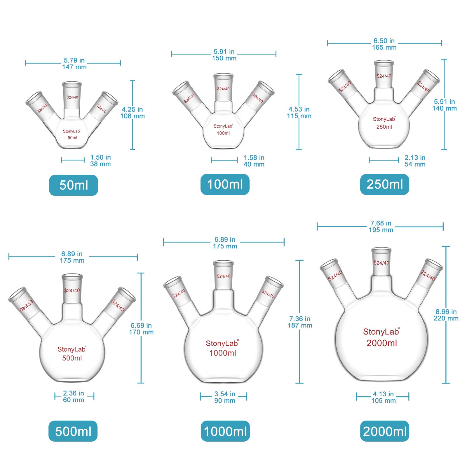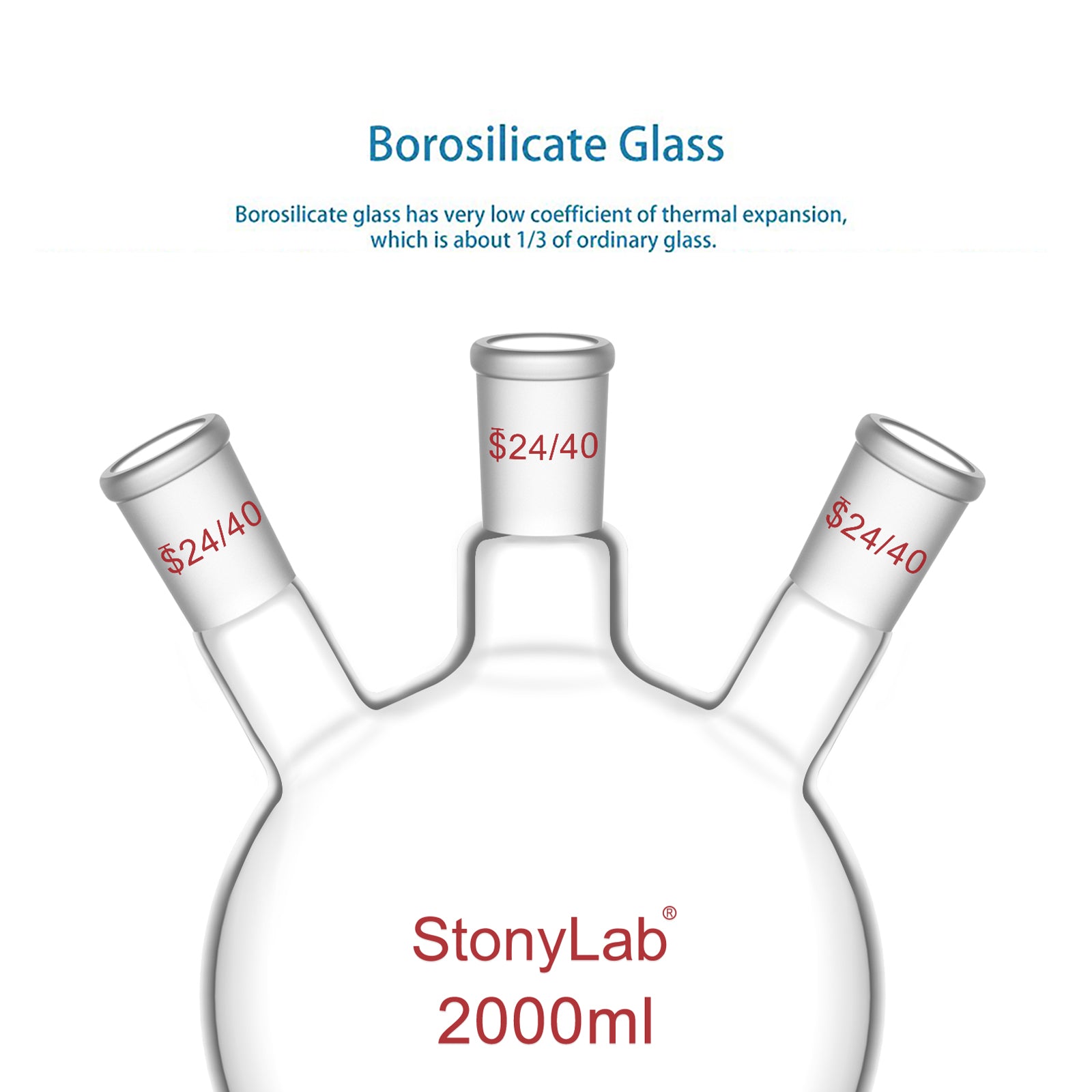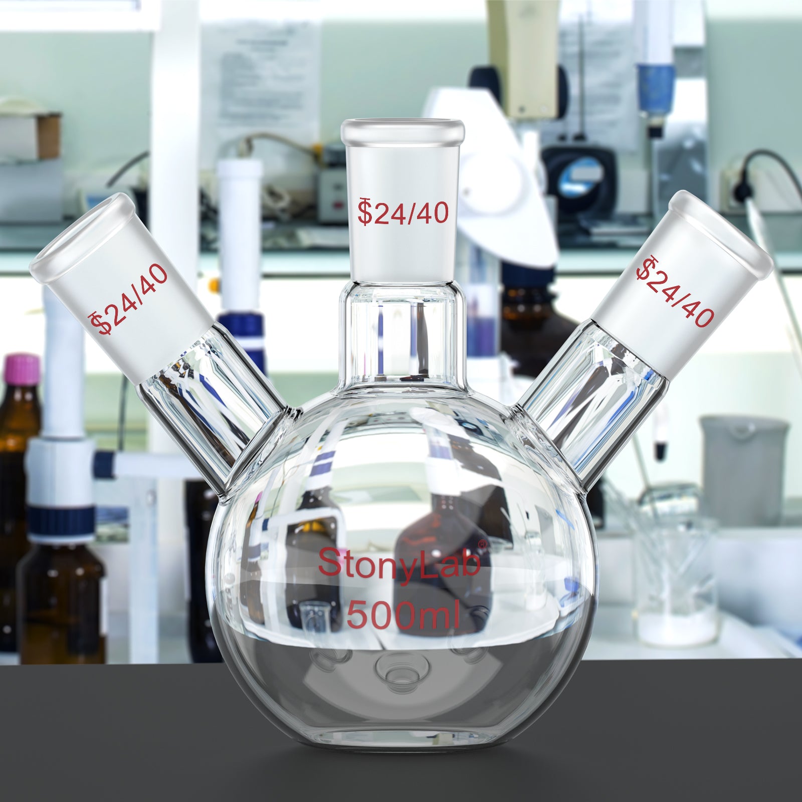 - Standard Taper Joints: 24/40 joints for direct mounting of condensers, addition funnels, thermometers/thermocouples, septa or inert-gas adapters; fully compatible with standard lab fittings