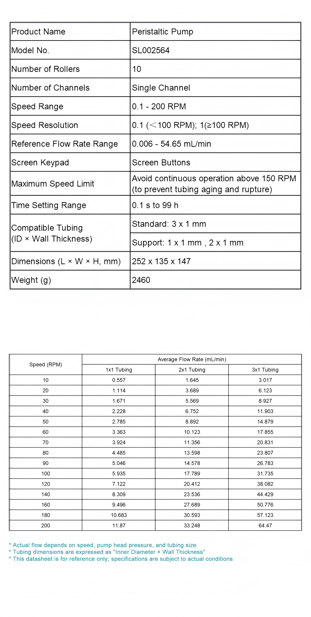 - Caution: Due to the small diameter of the tube used, please avoid continuous operation above 150 RPM to prevent accelerated aging and fracture