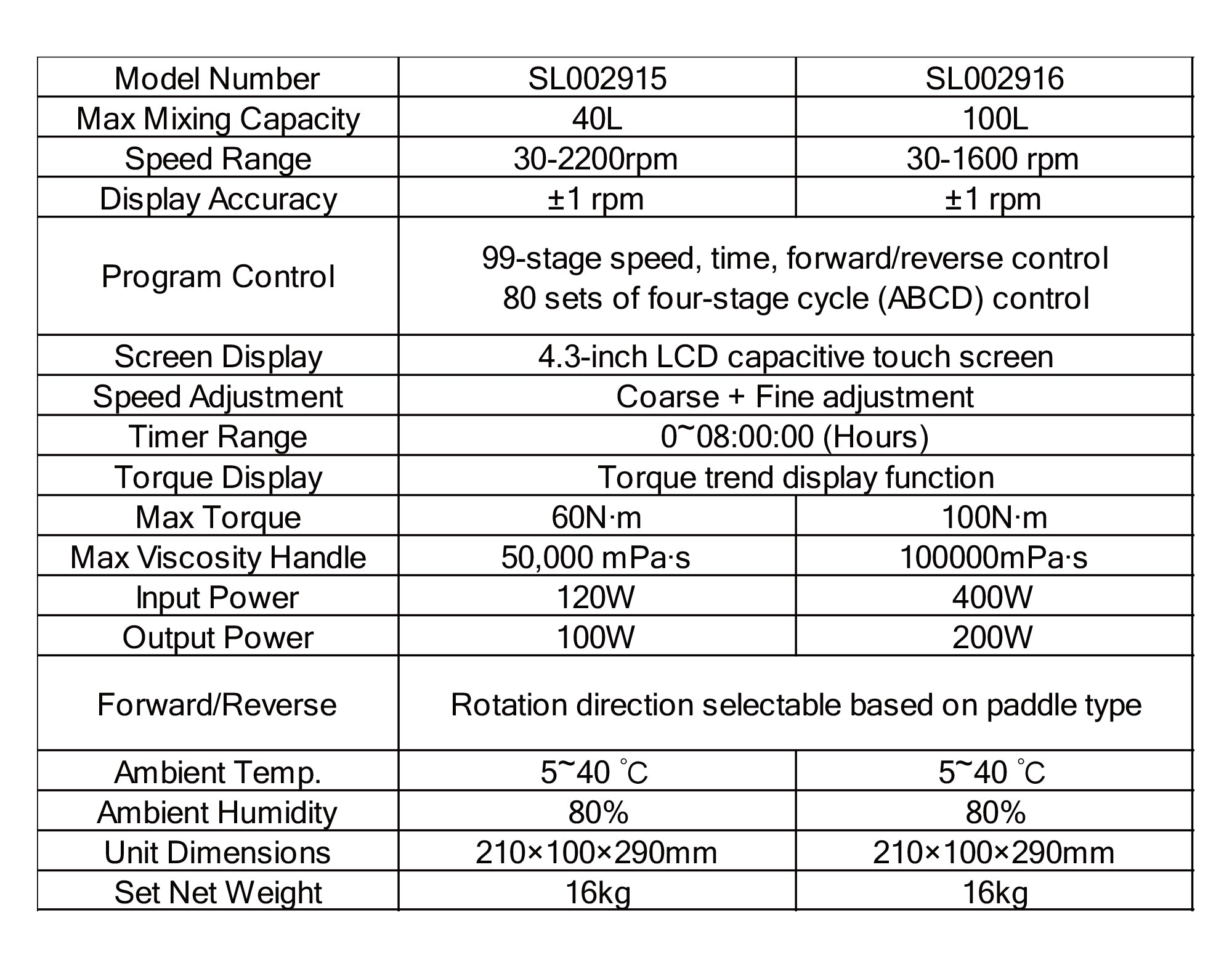 - Powerful High-Torque Performance: Driven by a durable brushless motor with stable operation. Delivers a maximum torque of 60-100 N°cm and a speed range of 30-2200 rpm, capable of handling samples with viscosities up to 50,000-100,000 mPa·s, ensuring uniform mixing under large-volume and high-viscosity conditions