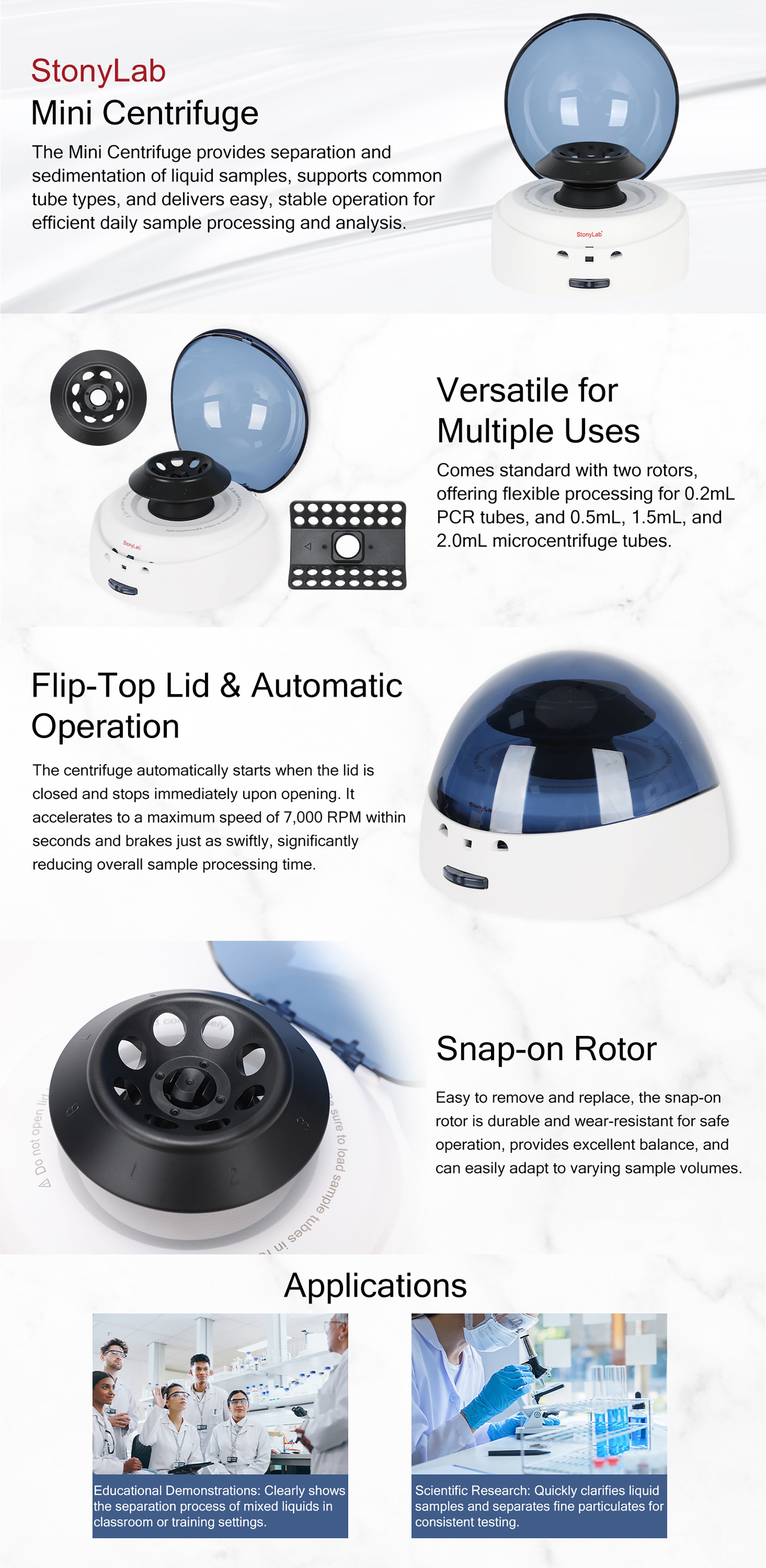 - Safety & Compatibility: Features automatic lid-stop protection for safe operation; compatible with 8 x 2 mL tubes, 32 x 0.2 mL PCR tubes, and 4 x PCR strip tubes