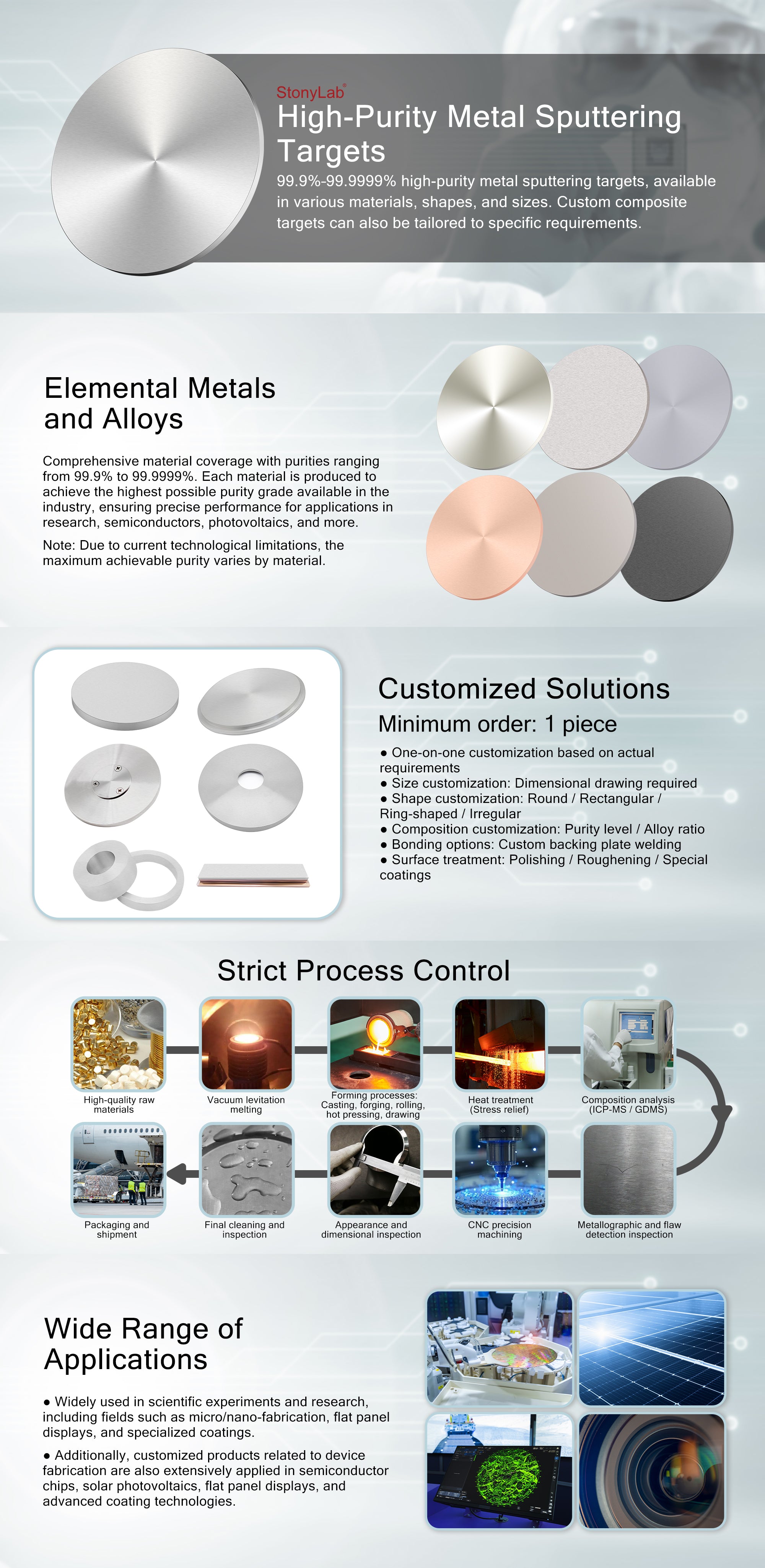 - High Performance: High purity, high density, and uniform grain for superior film quality.