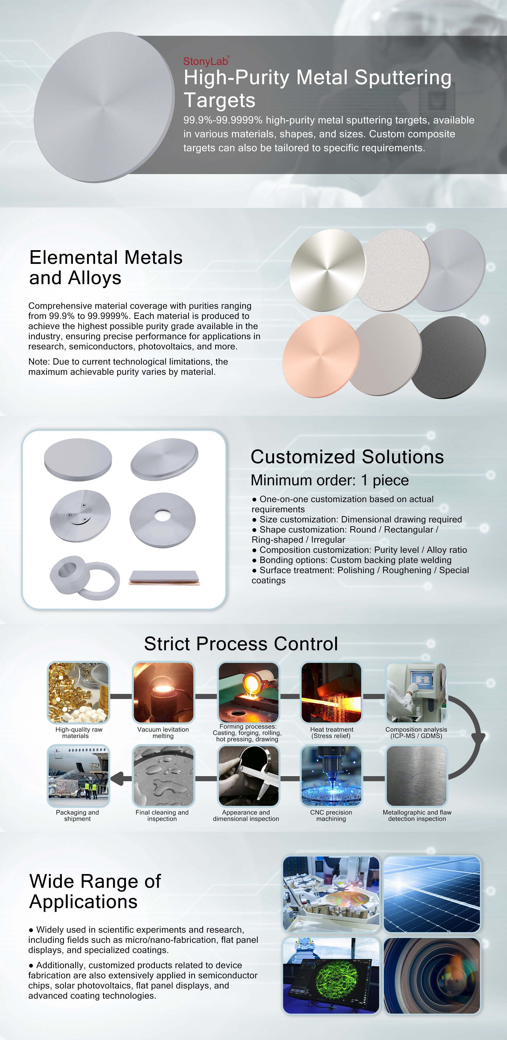 - High Performance: High purity, high density, and uniform grain for superior film quality.